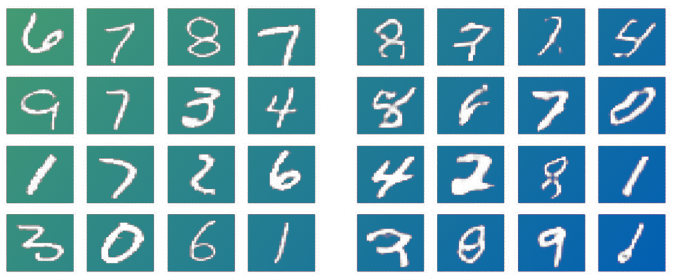 As in the above example, the discriminator needs to become good at correctly identifying the right group as the fake numbers and the left group as the real ones.